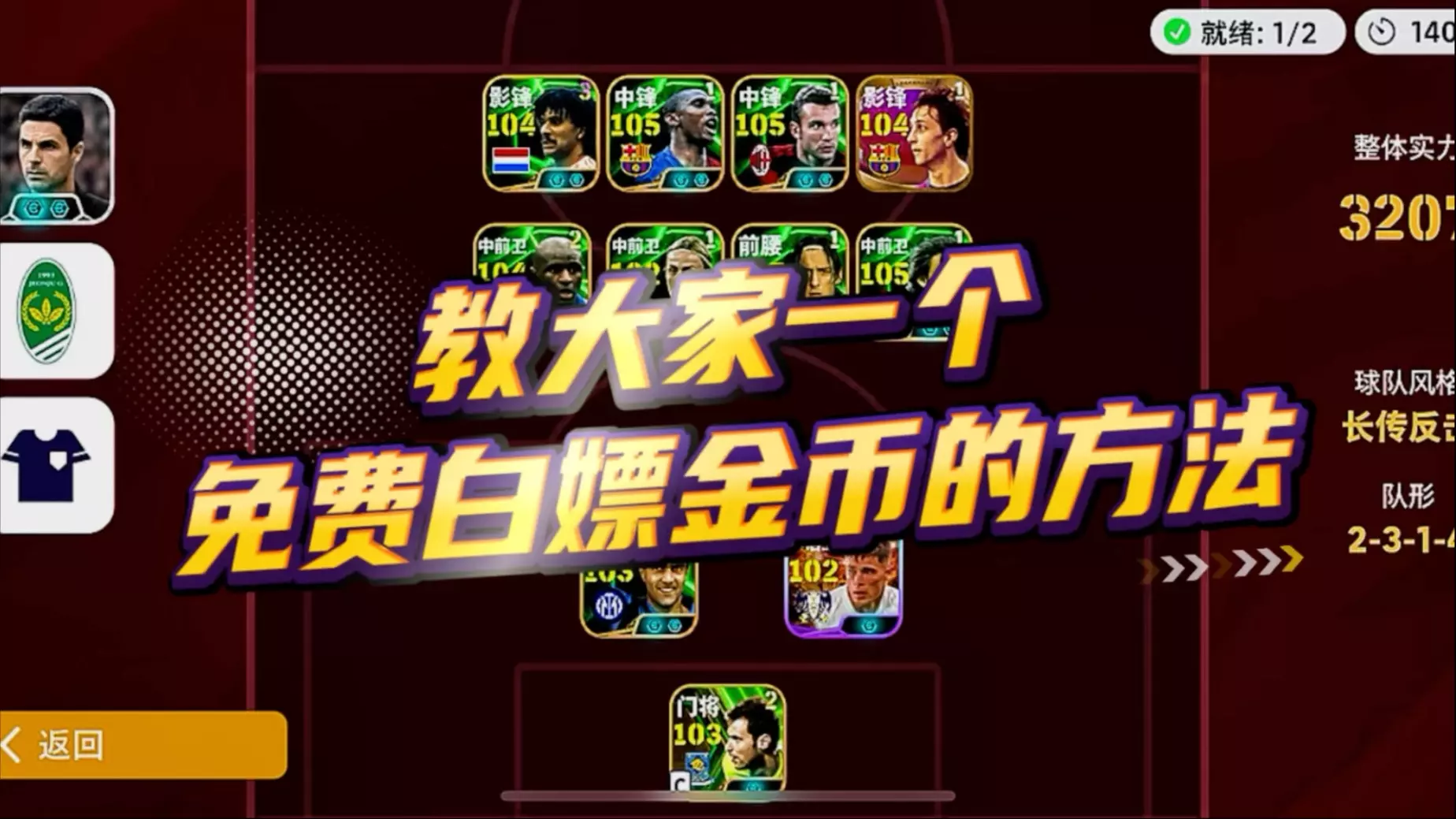 实况足球,教大家一个免费白嫖金币的方法。
