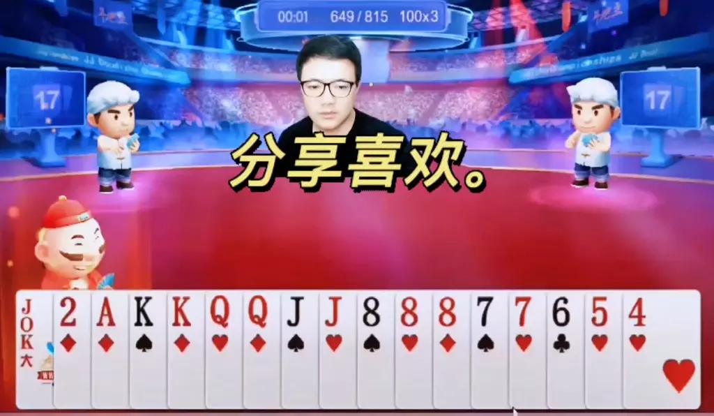 三岁玩牌破釜沉舟四个3的大胆一炸后期残局细腻的行牌为自己争取到了胜利!