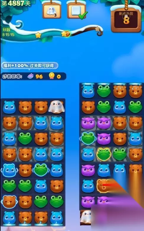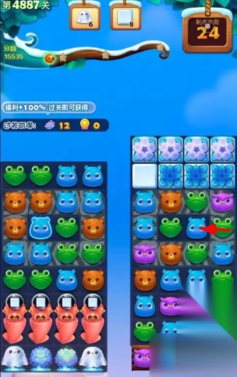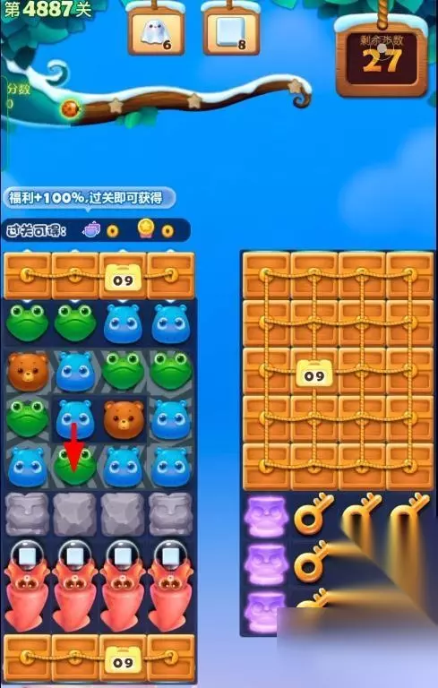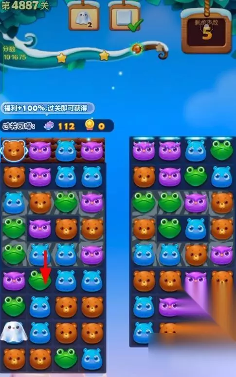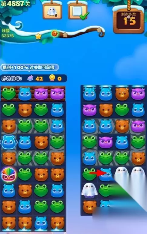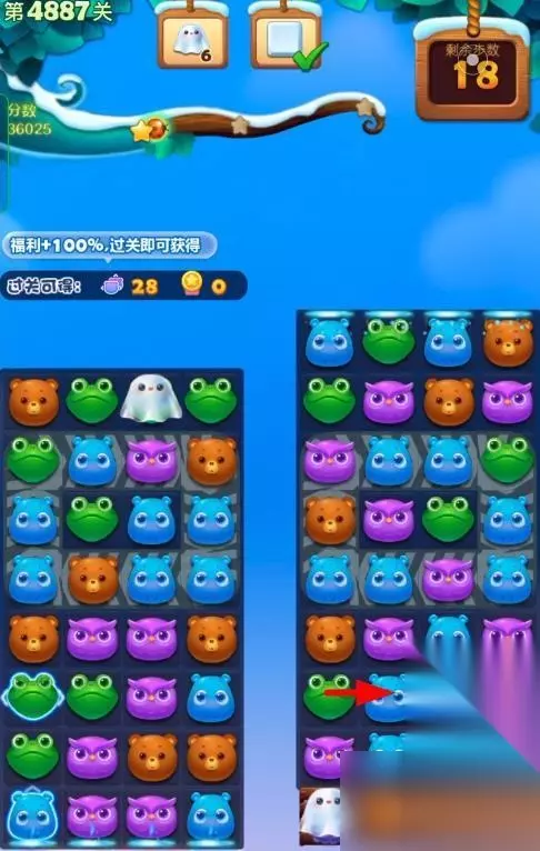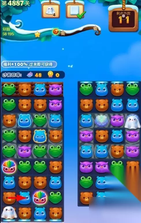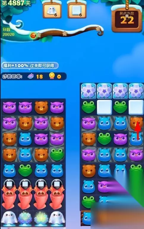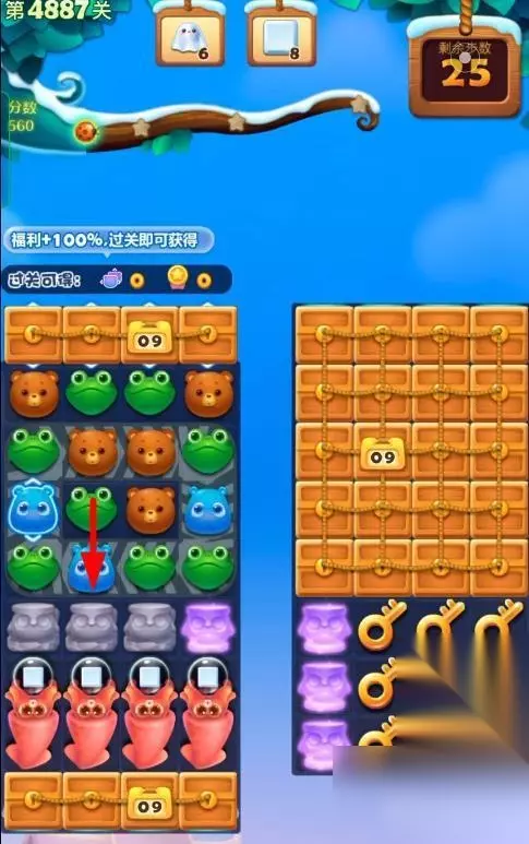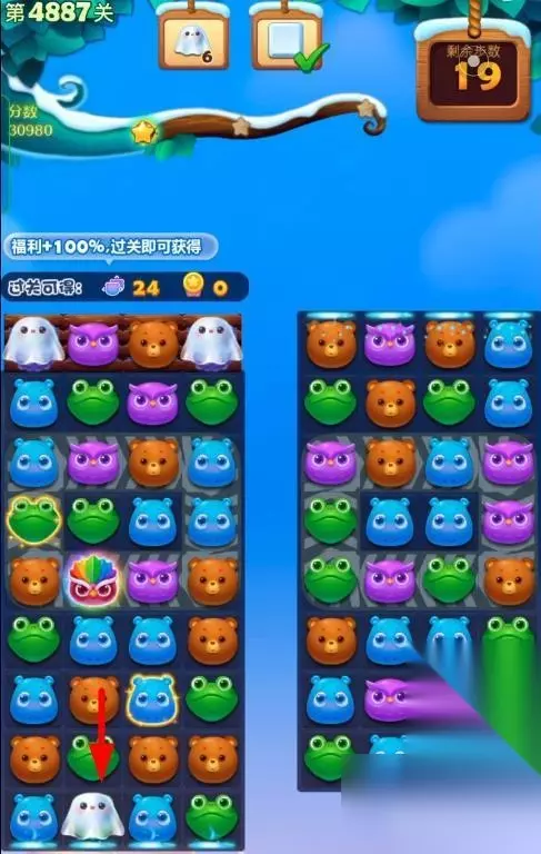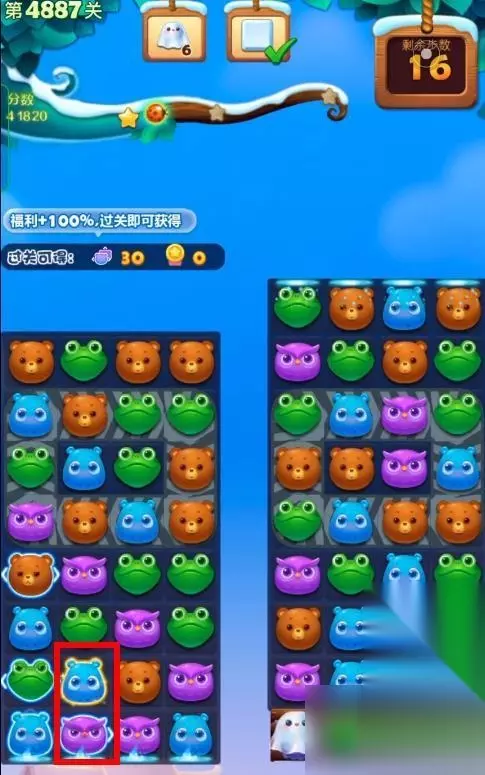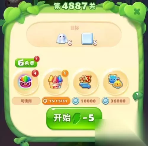 1、开启开心消消乐第4887关,