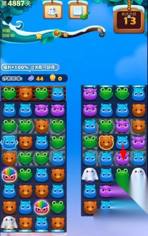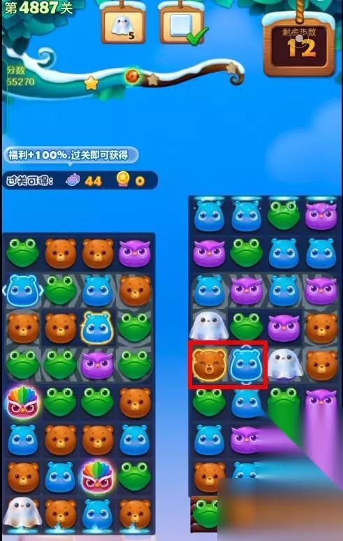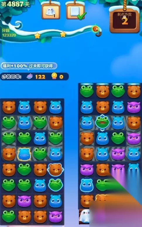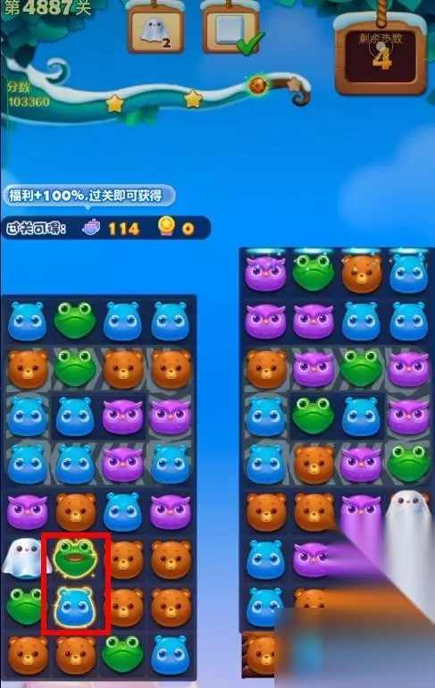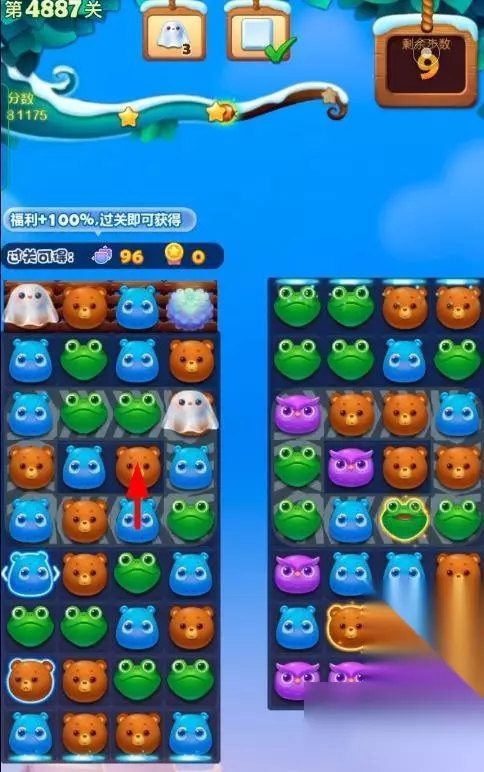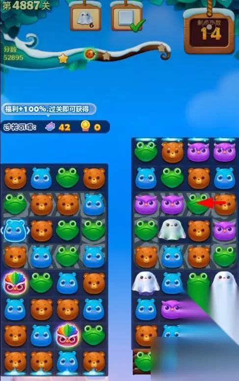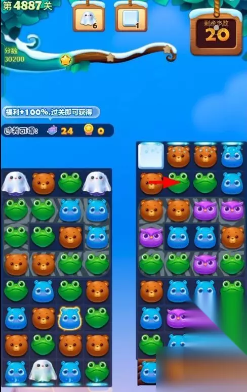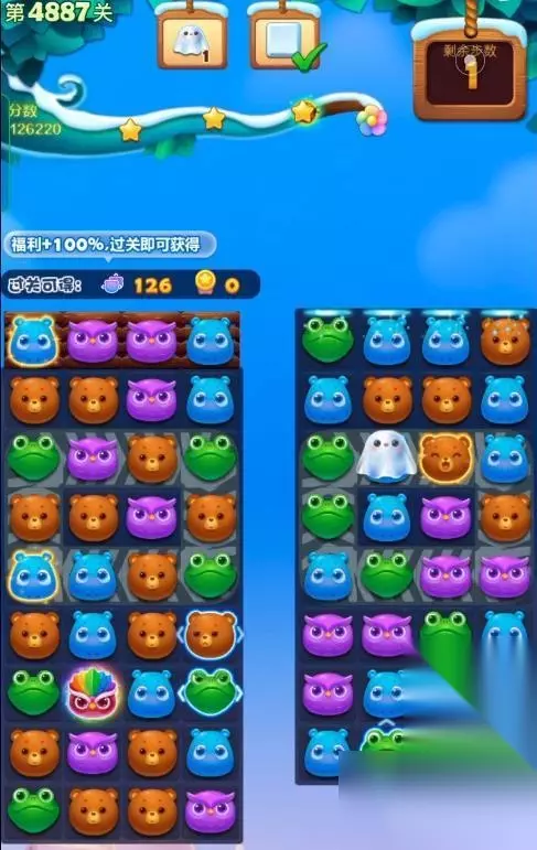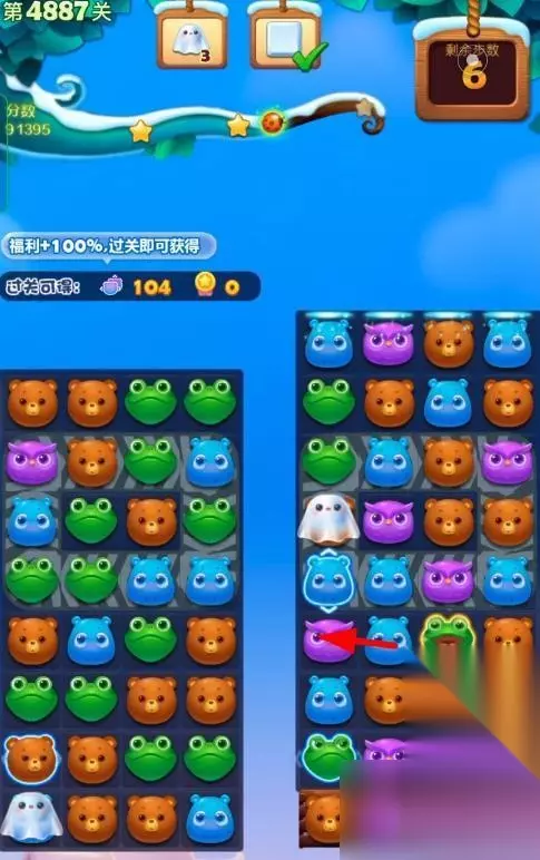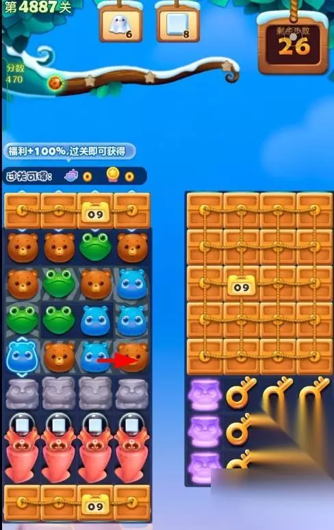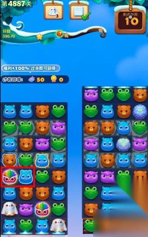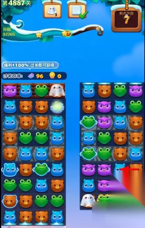 1、开启开心消消乐第4887关,