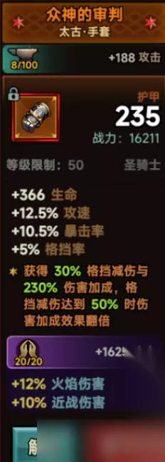 小丑+众神的审判倍需求是格挡减伤词条(乘法计算),需要4条格挡减伤词条才能触发,分别是手套、护肩、护腿和鞋子部位。 护肩:元素伤、暴击伤害、格挡减伤 手套:伤害加成、暴击率、格挡减伤(普攻流派多一条攻速) 护腿:元素伤、格挡减伤、能量上限增加 鞋子:近战伤害、移速、格挡减伤 项链:近战伤害、精英伤害、暴击伤害、能量上限增加 戒指:近战伤害、精英伤害、暴击伤害、能量上限增加