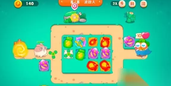 《保卫萝卜4》卧兔藏龙第15关通关攻略 1.先升级已有炮塔,清除中间的道具