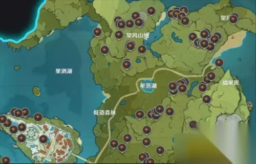 3、星落湖、低语森林、蒙德城等,这几个地区也能轻松的找到松果果树。