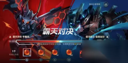 3、霸天对决即将开启,召唤师登录游戏和进行对局为喜欢的阵营助威,活动结束后,胜方阵营皮肤全服玩家可6折购买,败方阵营皮肤全服玩家可8折购买。