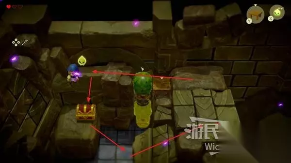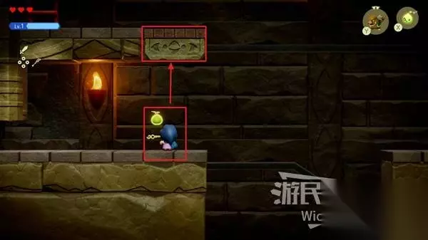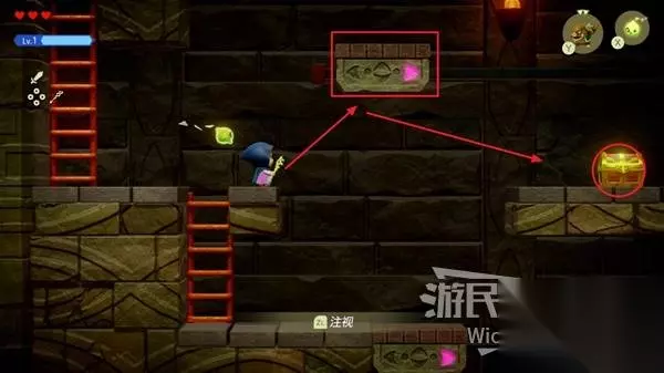 尽头的房间有一个宝箱,我们需要使用同步能力,然后往后拽这个宝箱。 宝箱全身出来即可开启,接着回到刚才的房间,进入被巨石挡住的隐藏区域。