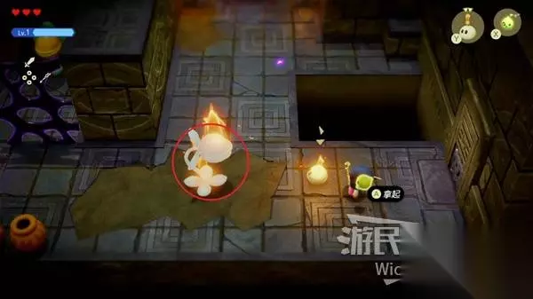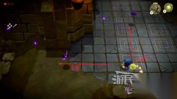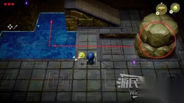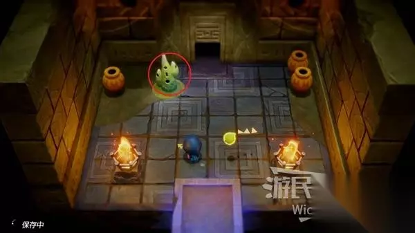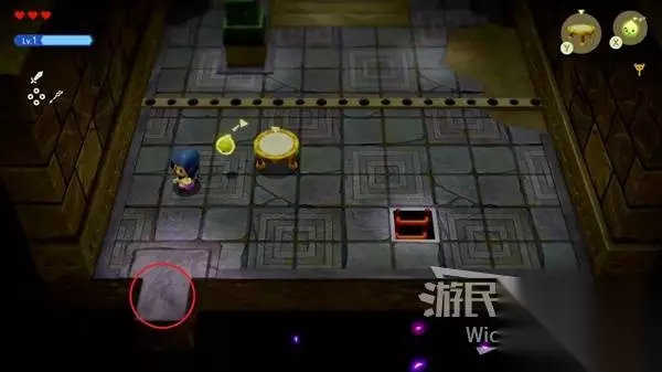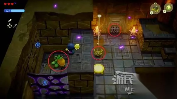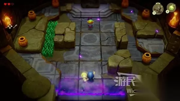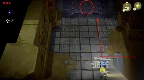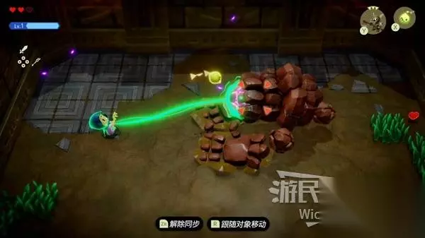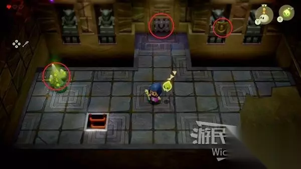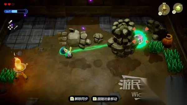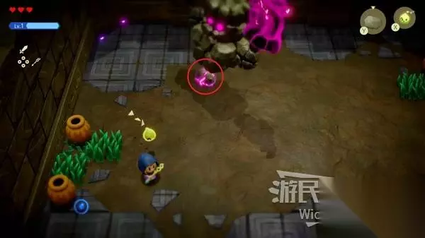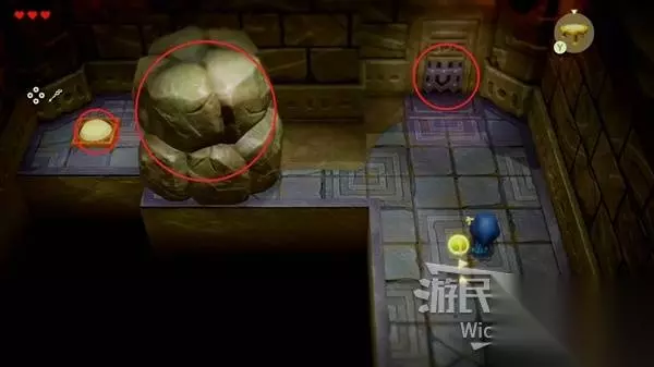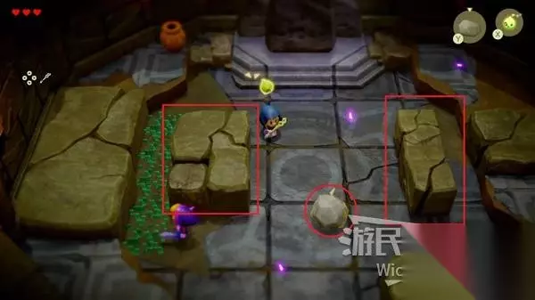 这场BOSS战很简单,我们只需要绕着红框所示的两个石头来回转,林克不一会就会丢失目标。 摇头晃脑的寻找我们,这时只需要放置一个石头,拾取石头锁定林克直接扔过去,再开启一个循环直到击败林克。