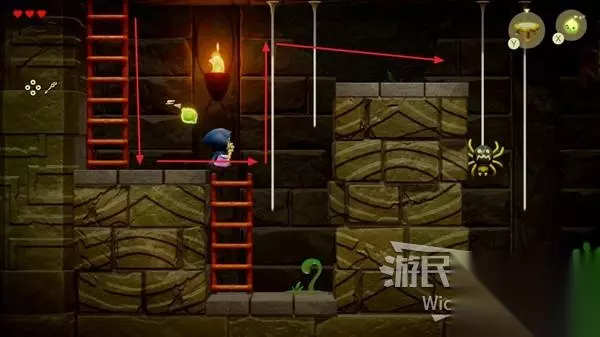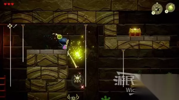 走到宝箱下方平台边缘放置海胆干掉野生的蜘蛛,通过吐丝蜘蛛+楼梯离开这个迷宫。