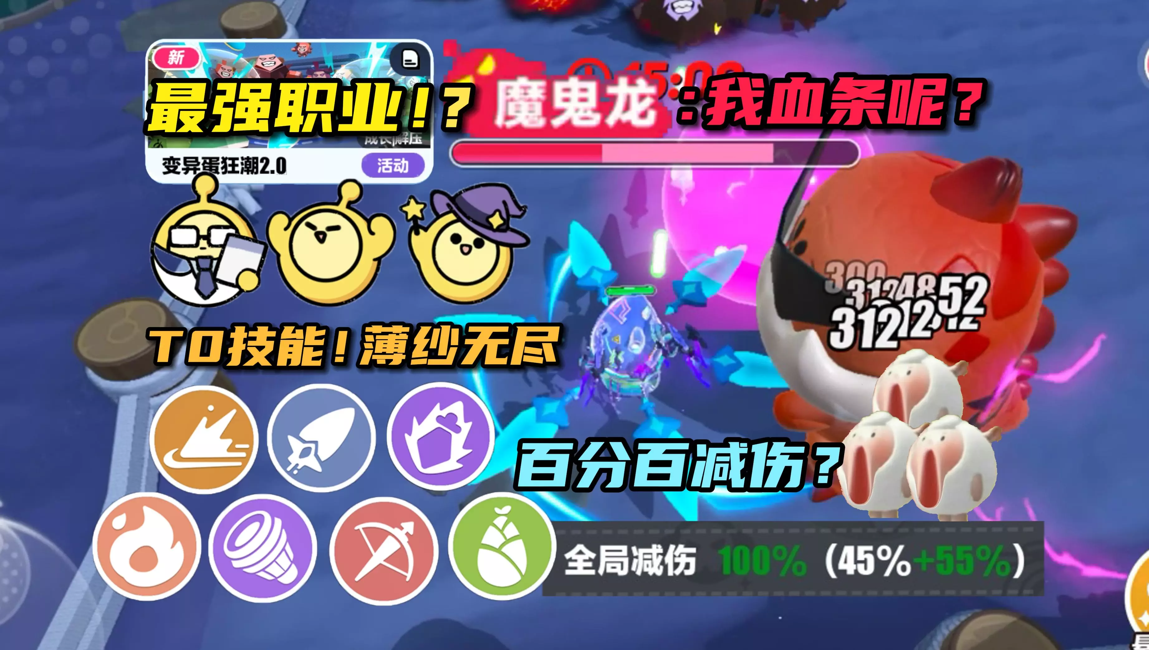 首先自然术必须的四级选和谐,八级自然之怒一般在七级自然铠甲的时候刷盲盒能出来(增加血量上限) 其次是扳手(扳手选修理回血较快也可以选重击)和无人机的组合有个隐藏血清是绝对防御 无人机四级选虚弱八级治疗力场可以跟随移动不用选治疗范围,选治疗频率和量,到这已经占了三个位置了。 可以搭个导弹无人机(主伤害)选炸在脚下,不要扩大导弹无人机的爆炸半径。 剑阵的话四级选剑阵护体也能抗伤。魔法飞剑比较花里胡哨目前解锁八级是万剑归宗和万剑随风个人觉得万剑随风伤害比较高。 血清的话,盲盒收藏家和血清银行,还有被动属性提升百分百这几个很不戳。 不过还没通关,打到无尽模式63关,一口血啃我一千多,四千多的血量也顶不住。[再见R]三个boss在后边啃屁股 [再见R] (50级满级,所有技能要在五十级之前升满,之后再吃经验也不会升了)#蛋仔派对 #变异蛋狂潮2.0攻略 #变异蛋攻略#蛋仔派对变异蛋狂潮2