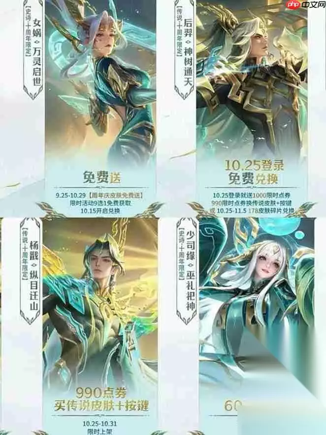 3. 杨戬・纵目迁山(推荐★★★★☆) - 传说品质,纵目巨面+青铜兽元素压迫感十足; - 特效层级丰富,打击感强,预算允许建议入手。 4. 少司缘・巫礼祀神(推荐★★★★★) - 仅需60点券限时秒杀(10月25日–31日),堪称“白菜价神皮”; - 技能召唤祭坛,符文玉璧环绕,颜值与特效兼备,辅助党首选。 三、行动指南:关键时间节点提醒