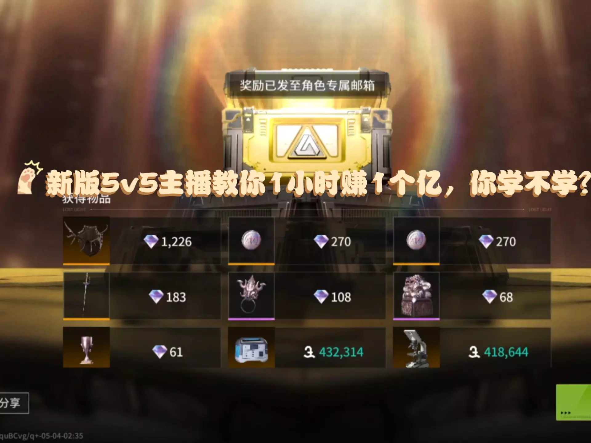这是《香肠派对》的赚金攻略,介绍了一把赚百万的方法:不要忽视白银藏宝箱,爆金后及时加密,还可通过击败同行获取物资,开局可找出生点附近的锁链宝箱,按此方法能实现短时间高收益,比如一分钟赚百万。