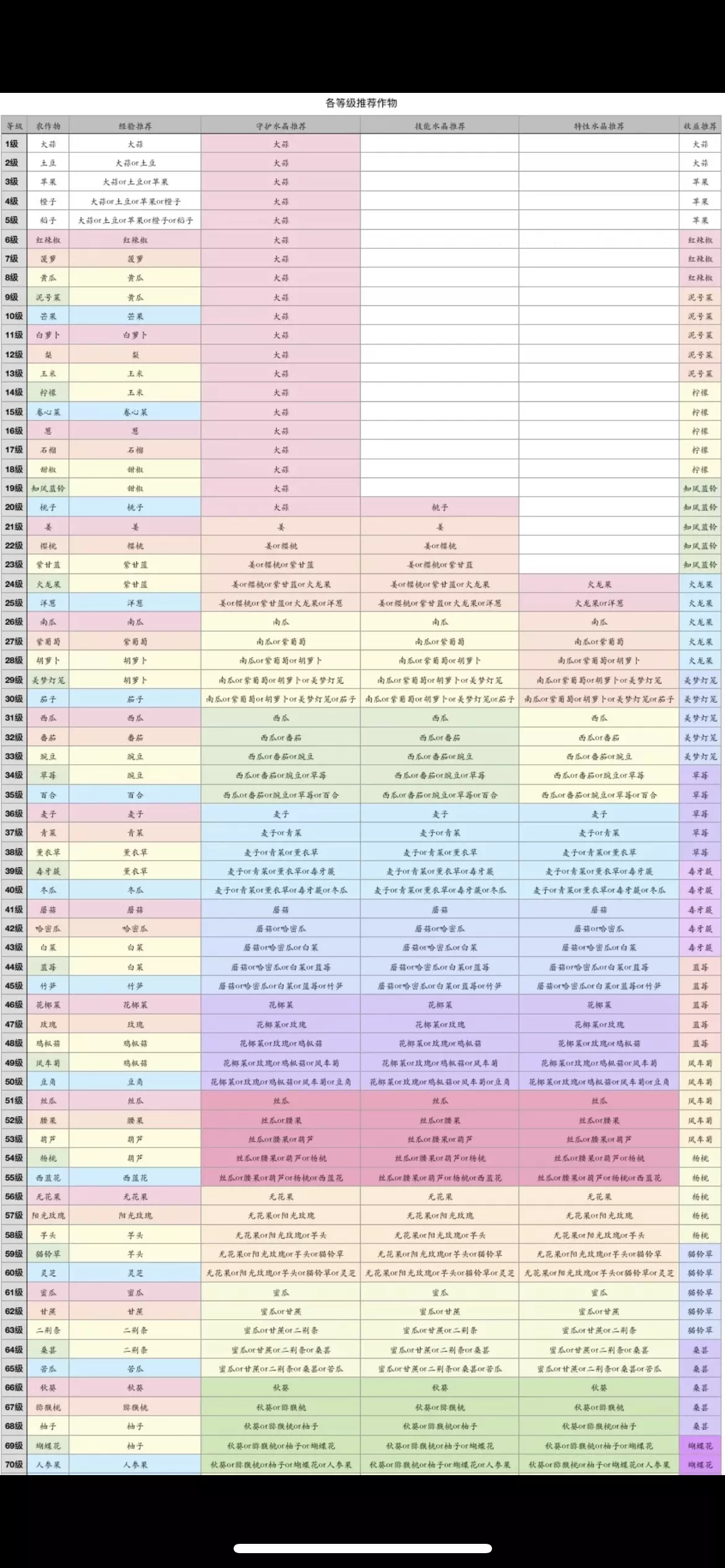 每次更新的内容会在置顶评论区说明哒[赞R](需要清楚版图片的可以私信我,现在更新的种植物越来越多,上传有点压画质了[哭惹R]) 🆘零氪玩家有救了!本周可以在田园阿公出买秋意小屋了!(已拿下!) 枫叶门牌➕秋意农田➕秋意小屋可以构成秋日枫叶套装,增加经济作物丰收概率到10%‼️ 田园阿公处的收购站每周都有更新收购的农作物,卖出可得田园币,可在杂货铺买农场装饰和表情包,宝箱等(后续应该会上新更多) 田园币的收购价格高显示绿色的篮筐,可以在好友列表看,也可以去陌生人农场一个一个看(陌生人农场每天有三次可以查看篮筐的颜色,具体价格还要去田园阿公处看)推荐最高价卖出! 加工厂玩法: 订单槽位:不花农场币解锁只有三个订单槽位,第四个槽位1000万农场币,第五个槽位2000万农场币 刷新时间:随着升级,刷新时间减少:48小时➡️40小时➡️38小时➡36小时,每天有一次免费的刷新机会可以刷新订单 收益:紫色>蓝色>绿色,紫色订单的收益最高! 泥号菜🥬、柠檬🍋、知风蓝铃💐、火龙果、美梦灯笼、草莓🍓、毒牙蕨、蓝莓、风车菊、杨桃、猫铃草、桑葚、蝴蝶花(经济作物:经验值为1,收益很高,缺钱升级可以选择种这个!) 种植时长是不固定的,浇水可以减少时长,每个时长的农作物浇水减少的时间不一样,如果闲的话可以多浇几次水哦!可以加速收成[赞R](最快时间已经写在表里了)新增的收藏品唱片机只增加首次浇水减少的时间 总结: 1️⃣小时:秋葵收益、经验都多; 4️⃣小时:猕猴桃收益、经验都多; 8️⃣小时:柚子收益、经验都多; 1️⃣6️⃣小时(经济作物):蝴蝶花收益更高; 3️⃣2️⃣小时:人参果收益、经验都多 技能水晶:蜜瓜以后的技能水晶都是最多的! 特性水晶:蜜瓜🍈以后的的特性水晶都是最多! ❗️种蝴蝶花农场币收益最高!种人参果经验最多!种蜜瓜及后面的作物守护水晶、技能水晶、特性水晶最多! 后续升级解锁更多农作物还会更新哒~可以收藏蹲一蹲! #蛋仔派对 #蛋仔派对艾比 #蛋仔派对艾比农场 #蛋仔派对农场玩法#蛋仔艾比农场加工厂#蛋仔艾比农场攻略