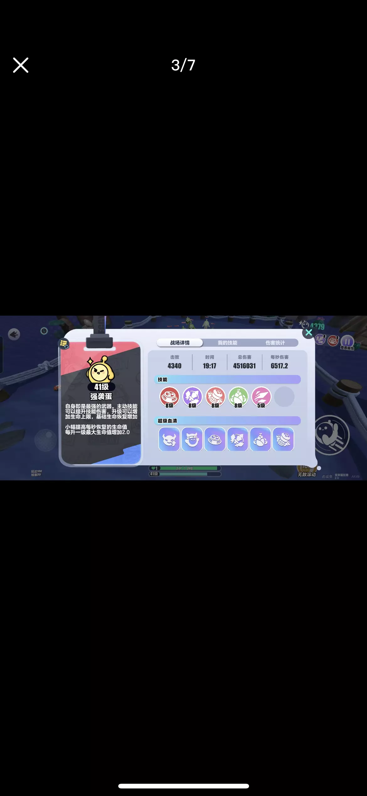 本攻略适用于➡️像我一样不会走位,最后被变异蛋淹没的蛋 👉🏻在已解锁的角色中首选强袭蛋 因为强袭蛋有增加血量上限的被动技能 1️⃣中心技能:“汲取灵力[火R]”这是剑阵[刀R]的后期技能之一,回血速度极快,⚠️注意 如果有增加单词回血量的技能,无脑选!拿到这个技能后,站在怪物中心不动也不会死👉🏻你将见证血量条的反复横跳[哇R] 2️⃣主要攻击技能:“地雷”[炸弹R],地雷是所有技能中单体攻击力最高的范围技能,普通的地雷技能主要缺点在于释放速度慢这时候就需要我们p5的地雷技能 “复仇者”➡️在收到伤害时立即在前后放各放置一个地雷,搭配上汲取灵力的吸血技能,在身处变异蛋群中心时地雷将没有技能cd!超高频率放置地雷! 3️⃣增加攻击力被动:“核弹地雷”➕“连环爆炸”,我们算一下,被攻击一次放两枚地雷,核爆地雷再分裂一次,连环爆炸导致地雷二次爆破,每个地雷爆炸四次,前后两枚地雷爆炸八次(想想就激动,理论上是这样的,但是实际上我好像并没见到那么多次爆炸,但是攻击力确实很高) 加上这两个被动后,每受到一次变异蛋攻击就会产生连环爆炸,打出高额伤害 4️⃣辅助类技能:首选“自然术”,自然术后期攻击可以回血,或是增加生命上限,除此以外,还是一个相对好用的击退技能 ⚠️接下来是前期选择的重点 血清必选:恶魔交易 损失40生命上限在后期很容易加回来 如果技能选择中出现增加幸运值:选! 幸运值提 高后后期出现盲盒概率会高很多,当然出现以上说的必选技能时还是先选技能 以上是我自己的通关方法,希望对你有帮助[大笑R] (仅供参考哦~ #蛋仔派对变异蛋狂潮 #蛋仔变异蛋狂潮 #蛋仔派对 #蛋仔派对攻略 #蛋仔攻略