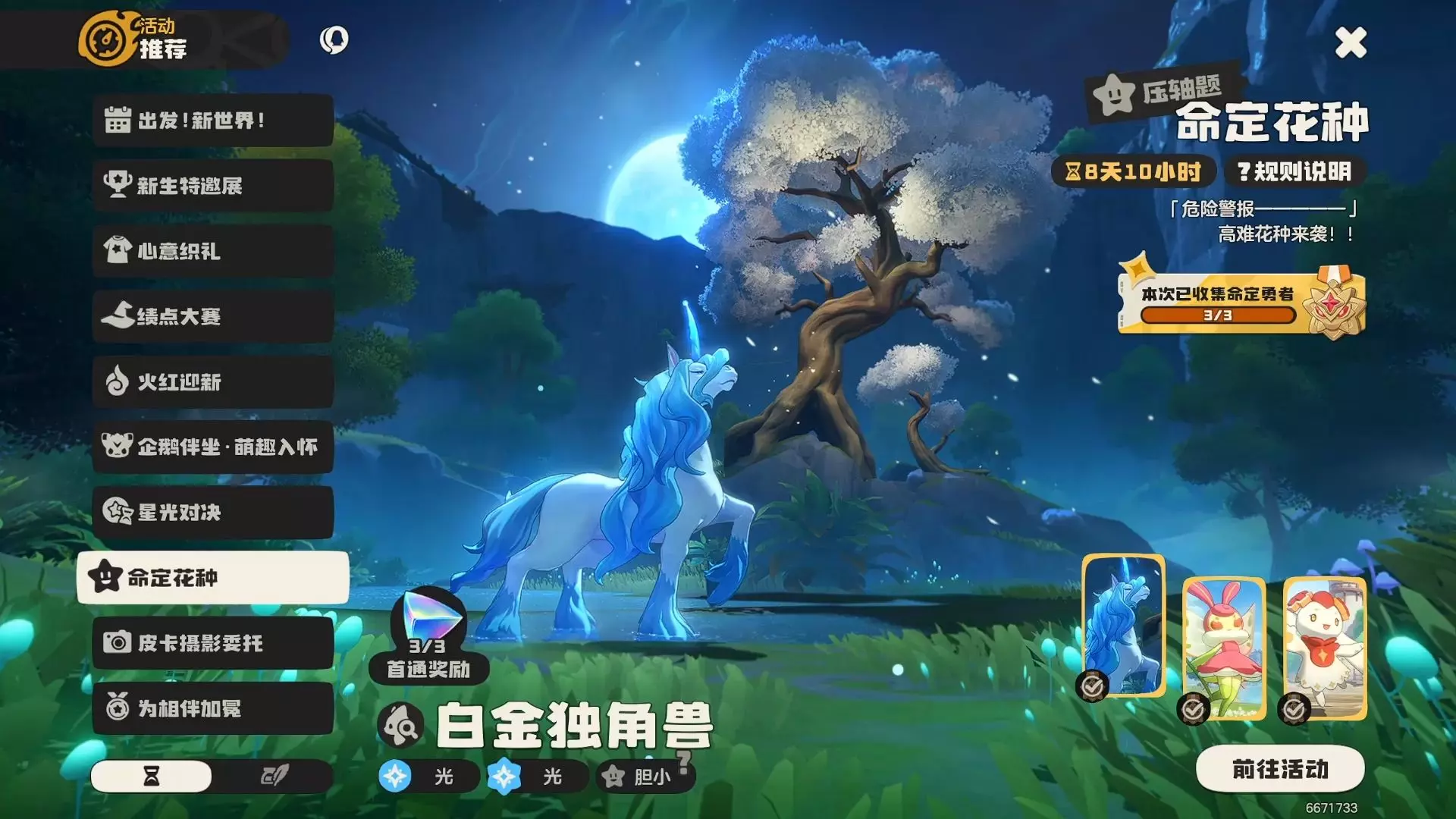 这是一篇《洛克王国:世界》的新手保姆级教程,带来命定花种活动里白金独角兽、花衣蝶、红绒十字的打法教学,还展示了挑战稀兽花种的印记要求,助力新手轻松完成挑战。