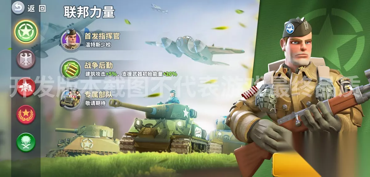 统帅们期待已久的「阵营天赋」终于如期而至,确定会在正式版本和大家见面了! 联邦力量的“战争后勤”可以提升建筑攻击力、支援武器增加初始能量;铁血帝国的“闪击战术”则提高了士兵攻击力和掠夺资源;而红色联盟的“国土防线”能够提升建筑生命、增加支援武器能量获取。 战术各有特色,更多的阵营、以及阵营专属部队也会在后续版本陆续推出,如何发展就看统帅们的选择啦! 【竞技场玩法】