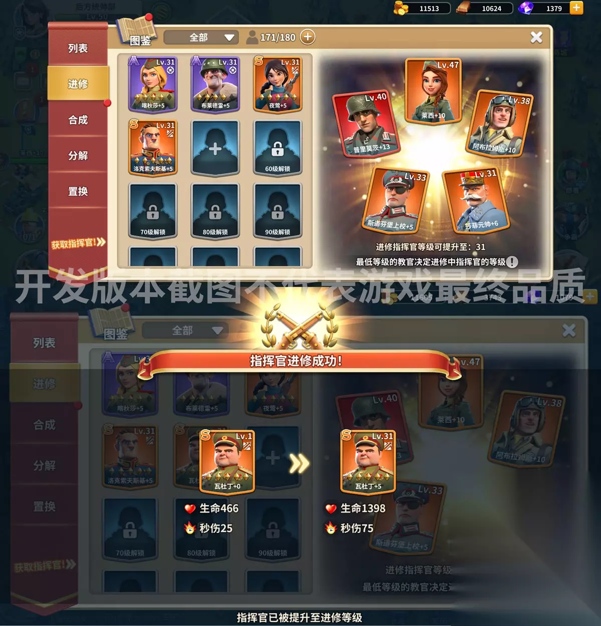 好不容易抽到S指挥官却不是自己需要的?新版本「点将」玩法将助大家一臂之力。 解锁该玩法后,统帅可在点将列表中设置1-2位指挥官。当高级招募获得S级指挥官时,被选中的指挥官抽中概率提升40%!点将列表每隔一段时间会自动重置,招募活动期间还可以手动刷新。 虽然每个点将槽位只能生效1次,但在生效之前,点将列表中的指挥官都是可以随时更换的哦,祝统帅们招募永远不歪! 【进修玩法】