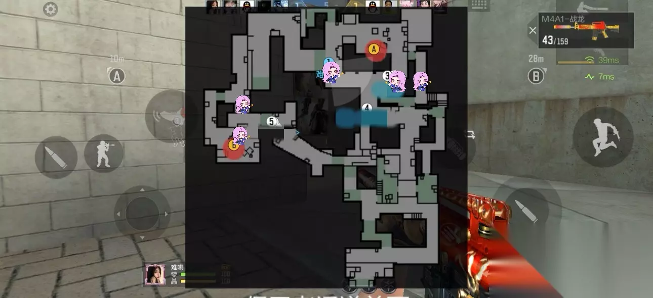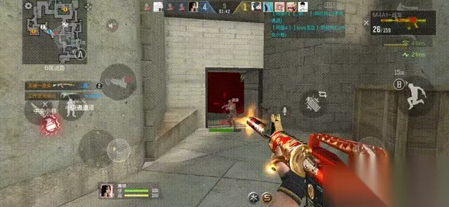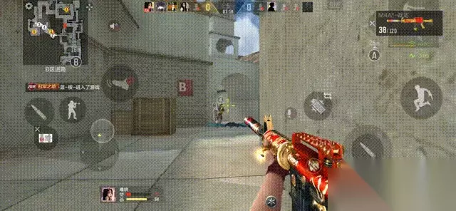 B通可以选择狙击枪站在B门架点,也可以选择步枪或者冲锋枪前压。如果观察到B通前压,中路的队友可以丢手雷辅助,但不要丢烟,会阻碍队友视野,打乱前压节奏。