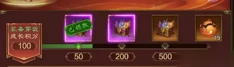 通过完成成长之路的任务,可领取丰厚奖励,进一步助力游戏养成。 - 装备佩戴篇:可以获得紫色、橙色品质的装备箱,最终大奖是橙装碎片。 - 装备强化篇:可以获得突破石奖励! - 装备升星篇:可以获得升星石奖励,大奖是10星升星石! - 坐骑养成篇:可以获得通天马铠碎片奖励! - 披风养成篇:可以获得华彩披风碎片奖励! - 神器养成篇:可以获得五行石和神器碎片奖励! - 灵珠养成篇:获得绿色&紫色品质的雷灵珠以及紫色日、月灵珠奖励!