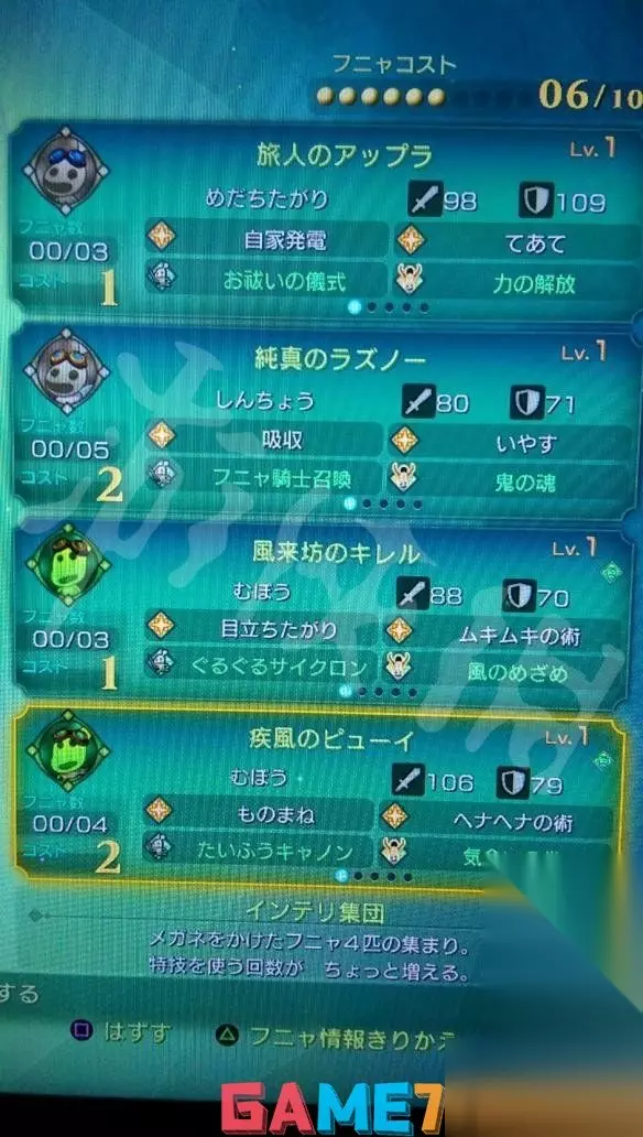 3.会造成异常状态的武器时常有奇效,建议可以给AI控制的角色装备,就算攻击力比较低也没关系。 4.有“根性”能力的装备建议至少给手控角色装备一件。在还没有拿到后期的根性项链之前,如果有随机打到根性装备记得保留一件,避免敌人范围攻击时跟着其他角色一起瞬间往生。以HP1的状况活下来,才能有机会打开道具栏补血。 5.如果可控角色死去导致队长被强制换人,可以先将角色复活后,再按下“↓”更换操作角色。 物品 1.所有路上打到的装备,建议全部都保留,不要卖掉,因为有些任务会突然需要某一种类的装备,身上马上就有现成的可以交任务感觉很好XD。 2.装备总数有上限但不用担心,可能要到后期才会有装备栏已满的讯息出现。 3.道具可以持有超过99个。 4.有些道具只有城镇的道具店买的到,王国内不会生产。 5.被诅咒的装备,以及未觉醒的装备(底下说明有???),其实不用浪费钱跟素材去解咒或觉醒,并没有特别强。