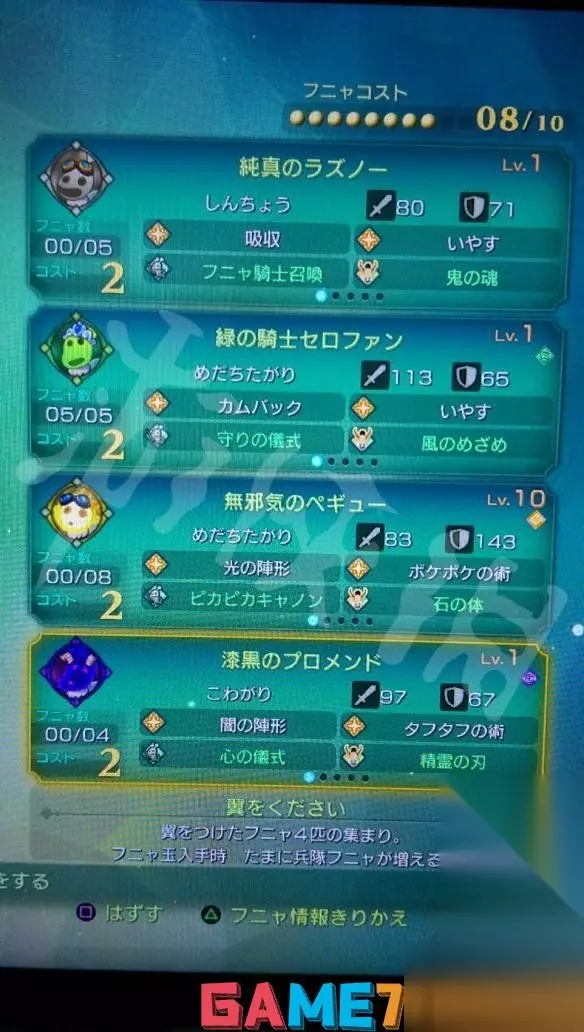 进军战斗 1.直接进一个高难度的战役,派上想练的队伍,就算任务失败也没有关系,只要有打败敌人,就能够入手经验值。 2.奖杯是要把所有主线、支线跟大地图上随机出现的战役,至少都通关一次。 其中王国附近有个防卫战的战役,一共有LV1-LV7,打过前一等级后,当该战役点再度刷新时,就会变成下一等级。但该战役不知为何就是超级难出,有时SL十几次也都不见得会出现。 所以后来就在王国点附近一直打怪,有的时候战斗结束之后,这个战役点就会跑出来了,给一直刷新不到的玩家参考看看XD 3.如果不确定该战役有没有打过,只要看看HARD难度能不能购买就知道了,不能买就代表没有打过。 4.强化攻击力与防御力的技能只各耗战力150,算是满实用的技能。