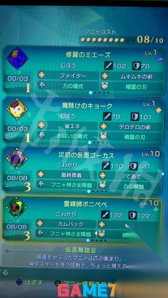 小精灵 1.前期会补血的小精灵可以优先考虑,可以节省一些药品。 2.小精灵数量会影响某些技能,可以依照出战角色的技能来搭配小精灵的属性。 3.小精灵依照组合会有特殊效果,但感觉有点鸡肋......。(但如果要白金奖杯,至少要组合一次XD)。 头上有角或骨头的: