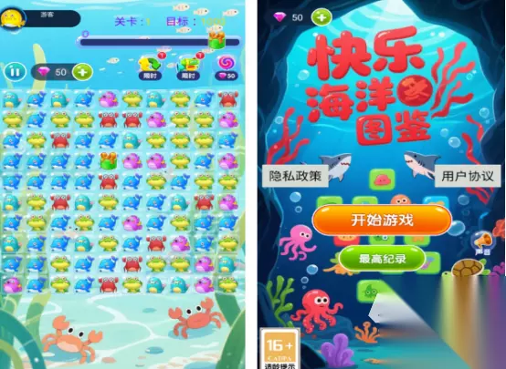 这是以海洋为主题能够展开消除的,也是无需要联网就能体验的单机类型,既能帮助玩家在玩的时候,仿佛置身于海洋馆的世界里面,也有各种颜色丰富的小动物,无论是螃蟹还是鲨鱼等,他们都有着这特别生动的形象,呈现颜色也是五彩缤纷的,仿佛你置身于游戏的海洋世界一样。通过点击三个或以上颜色的,就可完成消除任务。 高速下载 普通下载 优先233乐园APP下载 5、《缤纷海洋图鉴》