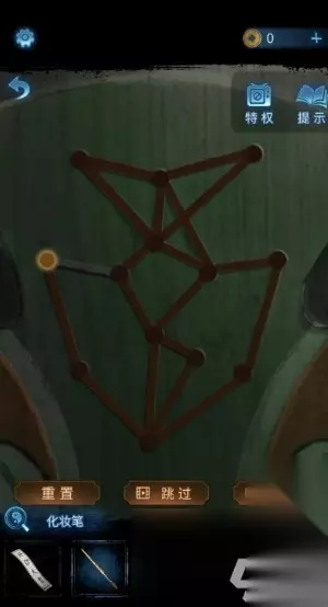 10、前往暗门后的桌上,使用化妆笔蘸取红色颜料把门上的脸谱一笔画完。