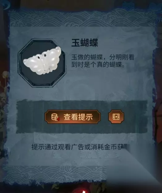 6、继续点击墓碑,然后将刚刚获得的玉蝴蝶直接放在墓碑的缺口上,这样的话墓碑会立刻的破裂,这样获得图案:兰花(向左)、山(向下)、竹子(向左)。