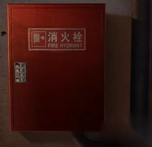 3、然后继续点击剧院大门口右边的消防栓,可以将刚刚获得线索输入进去,7153,这样的话就可以获得灭火器了。