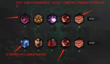 这两天发现,伤害是足够了,但是生存是问题,探索出依靠持续常驻技能减伤,类似其他游戏的光环流,比如最后纪元的光环骑士等等。 你技能栏位切换,他常驻的技能效果还是存在的。 思路依靠忍受的痛苦、光环羁绊狂暴化、血之爆炸等常驻技能,来提高输出和生存。常驻技能全部放技能栏位1,然后吼、斗士的愤怒、旋风等输出技能放栏位2输出。
