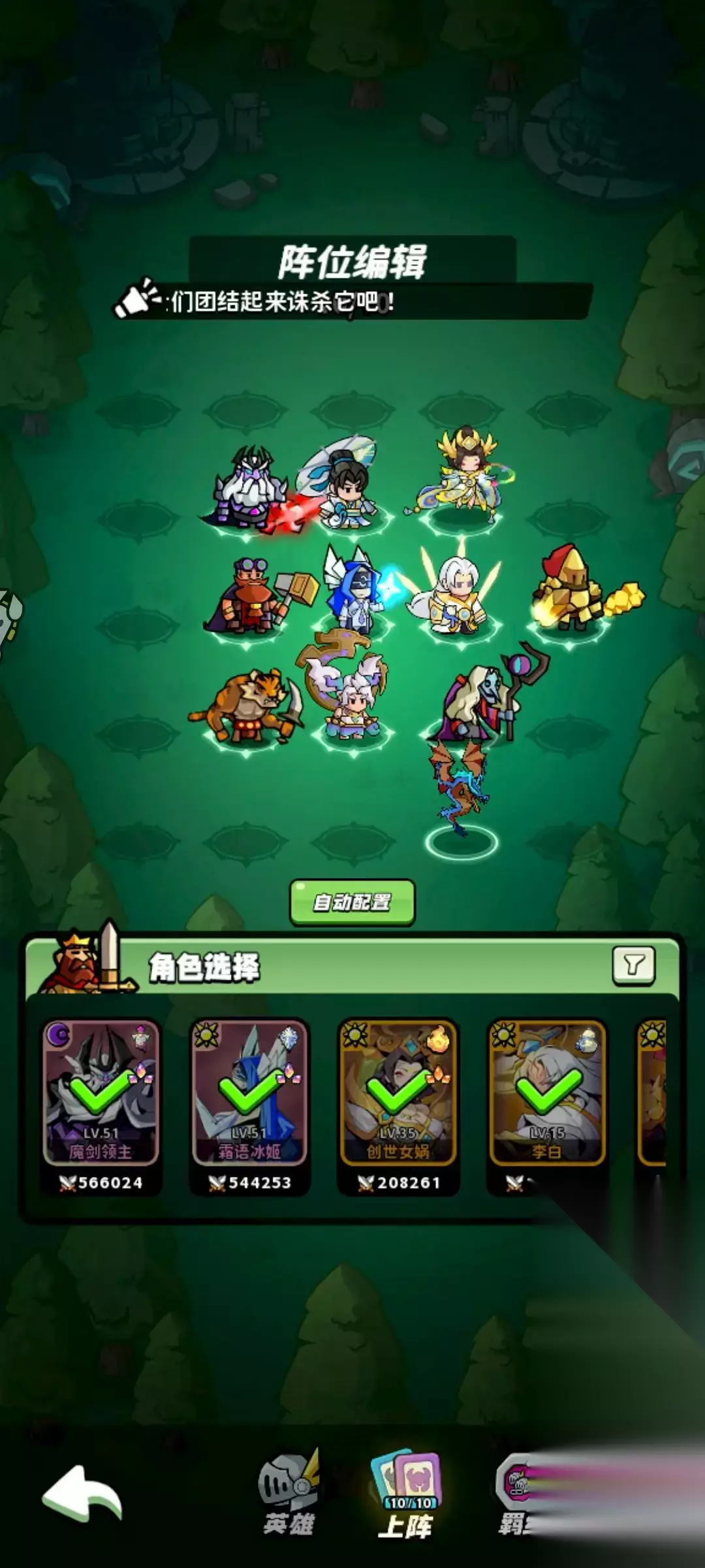 6、这是我的站位分享,榴莲站前排要吃地精的攻击才行,远程站前,近战站后,这样进去可以让英雄集中到一起,铸造师一技能最大化