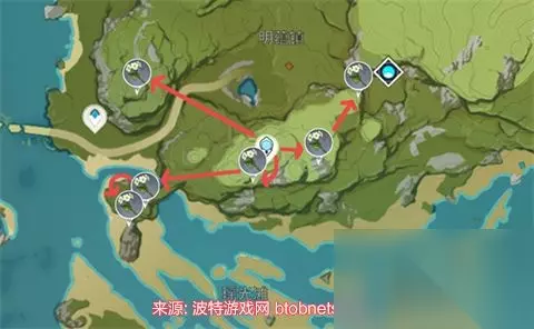 原神4.0清心采集路线图-70朵清心采集点分布图 原神清心去哪里采集快?清心是甘雨的必须突破材料,同时我们也可以用清心来制作药物等等,所以清心的缺口整体上来说是非常大的,下面就是小编给大家带来的70朵清心采集点分布图,希望对所有玩家能够有所帮助。 原神4.0清心采集路线图 1、清心点1:无妄坡,在这里可以采集到17株。
