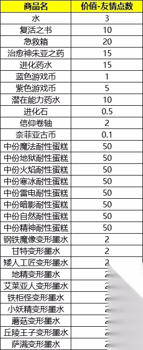(仅为游戏UI示意页面,非最终效果) 友谊商店商品大焕新,具体如下: