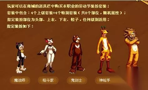 每个职业的装扮都是在cos自己的导师,枪手的凯利,鬼剑士的G.S.D,格斗家的风振,魔法的小莎兰,还有圣职者强壮的歌兰蒂斯。 5、动物园套、209年五一套