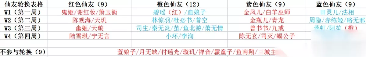 目前不参与仙友轮换的红仙友有9位,分别是萱娘子,月无缺,付瑶光,璇玑,禅音,蜃童子,鱼南翔,三城主和锦鲤儿。一般为联动系列红色仙友必然不参与轮换,后期出的仙友大概率不参与轮换(目前唯一例外的是鬼姬)。 仙缘获取途径: 仙友寻访是获得仙源最重要的途径,仙友升到满星之后再兑换也会转化为对应数量的仙缘。 拜帖获取途径: