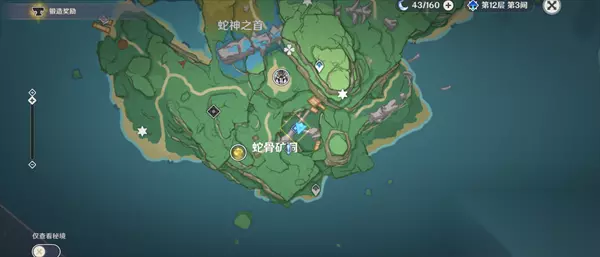蛇骨矿洞·磐柱镶珠位置如下图所示,跟随元素视野即可找到,需击败镇守的怪物