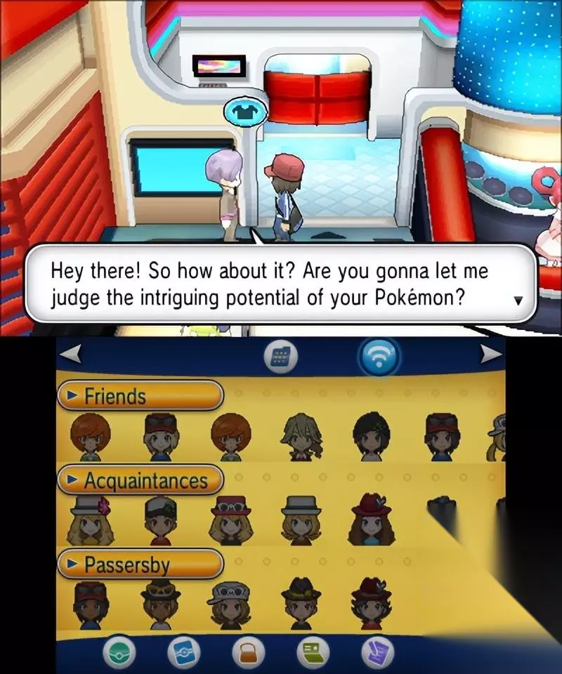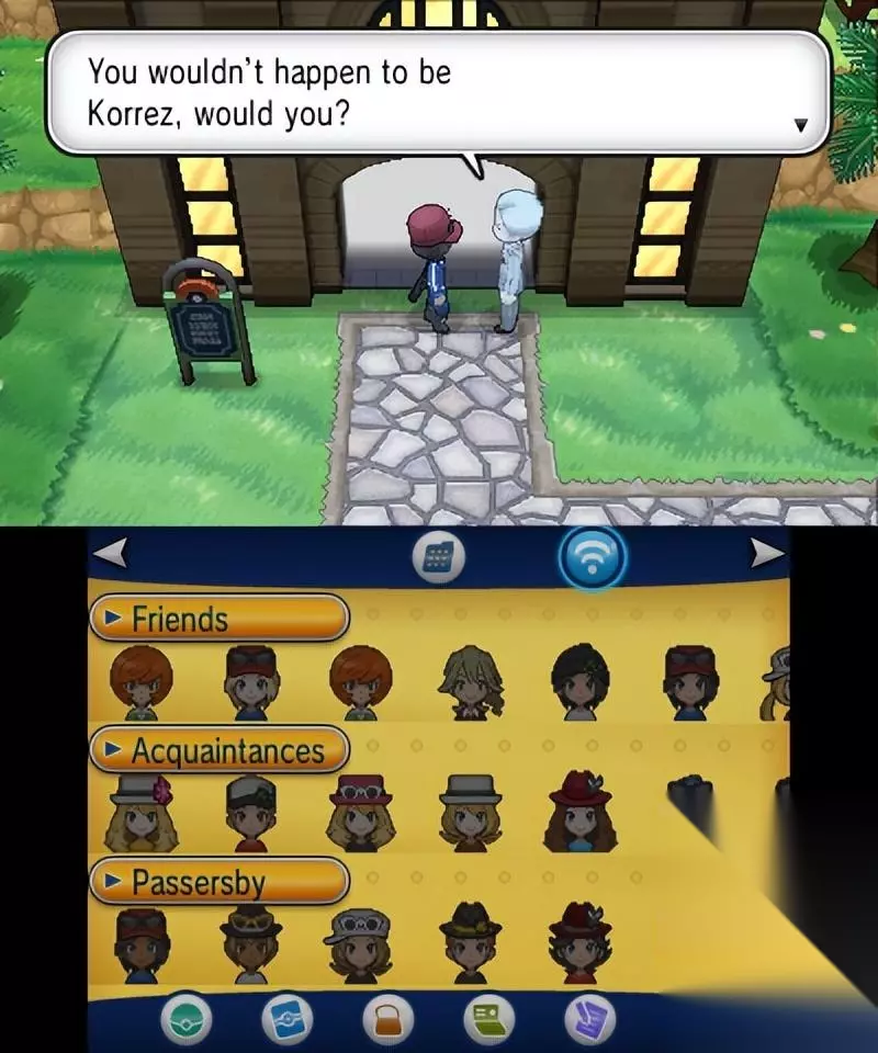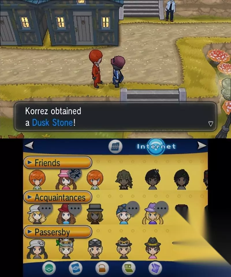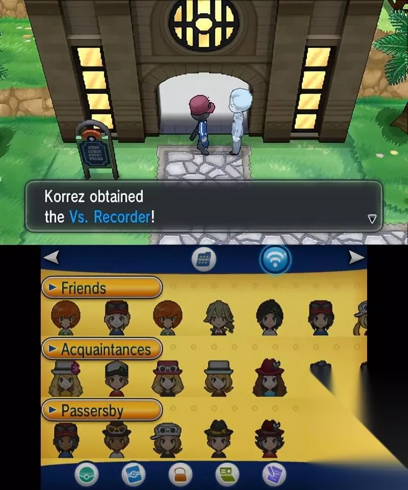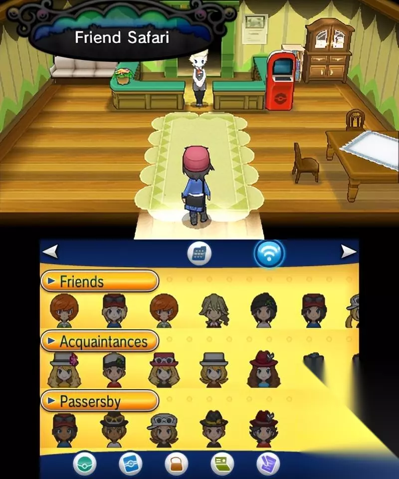 右上角的建筑是朋友狩猎场,你可以去朋友的后院捕捉特定属性的精灵 有机会遇到隐藏特性的精灵 每个后院有三种不同的精灵,前两种在通关前存在,第三种需要在主人通关后出现 后院的属性根据3ds的FC确定