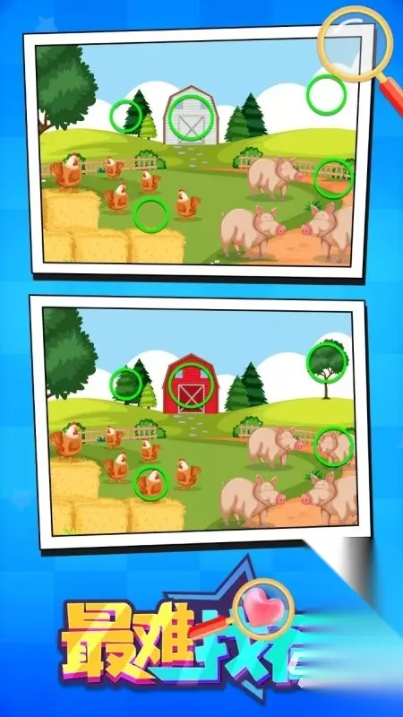 找茬游戏是一种早已深入人心的经典休闲游戏了,不需要复杂的操作也不要求玩家们具有高超的技术,而是考验玩家们是否具备一颗善于发现的心,最火的找茬游戏有哪些?每一次的找茬挑战,都能让玩家经历一场发现细节的迷人之旅,更是让玩家的观察力以及细心程度通过找茬游戏得到了升华。 1、《找茬高高手》