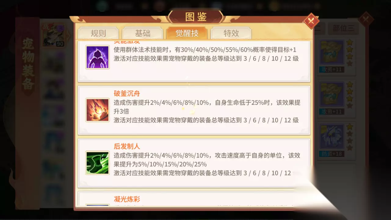 兽魂选择: 传统物理宠物兽魂均适用,暴躁、刺穿、强攻等都行,主兽魂利爪/凌弱都行,作为先手敏攻宠物推荐利爪,增加暴击概率,目前宠物守护【青龙】守护效果3,可以触发【龙爪】,弥补一段伤害。 宠物装备: 吸血鬼作为远程群伤物理宠物,可选的装备技能不多,但是【破釜沉舟】非常契合,吸血鬼专属星图被动技能【怒血獠牙】也是根据自身损失生命比例获得物伤加成。 同时基于这点,在天赋技能4阶上,如果放弃伤害加成,增加宠物保命能力,可以选择【求生毅力】配合星图技能和装备技能,在吸血鬼低血量下能够获得最大的伤害减免和伤害加成效果!~