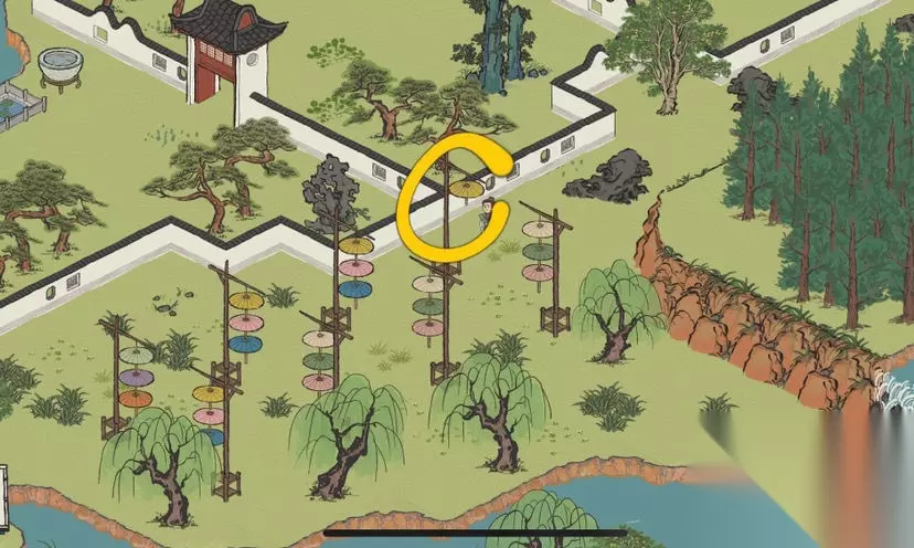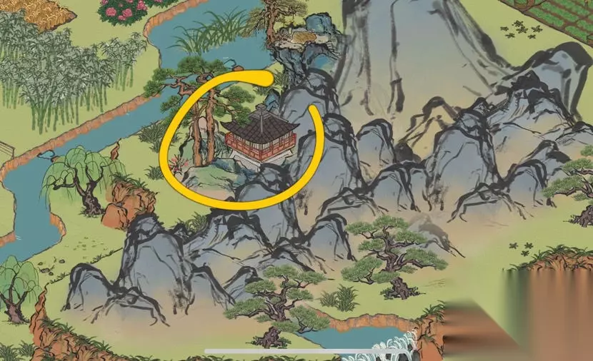 江南百景图小青蛇纸条攻略大全: 第一张纸条:桂海寻孤,找到物品互动。 找到桂花树就是钥匙所在的地方,在不知道情况下就随便点点,具体就在黄色圈中。