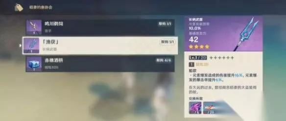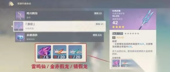 原神渔获获取攻略 「渔获」俗称鱼叉,雷电将军的平民武器,还有武器的精炼材料,都在稻妻钓鱼协会兑换获得。 武器和材料的兑换时限为永久,不会随版本更新消失。