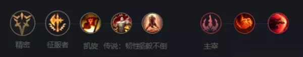 4、符文推荐:精密、征服者、凯旋、传说:坚韧、坚毅不倒、主宰、无情猎手、猛然冲击;