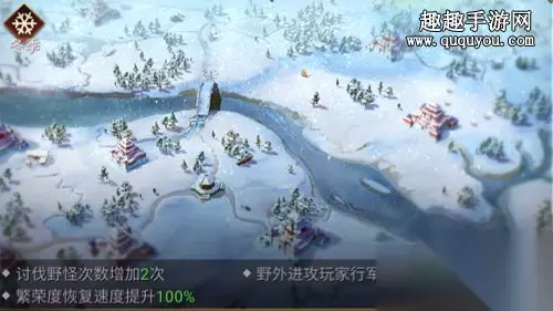 2、冬天加速恢复 当季节是冬天的时候,繁荣度的恢复速度就会增加1倍,也就是冬季的繁荣度恢复是平常的2倍,这个时候就能恢复大量的繁荣了。 3、迁城加速恢复 当大家迁城以后,繁荣度的恢复速度会大量的增加。另外迁城以后居民的贡献中也会包含有繁荣度奖励。 繁荣度的恢复方法有这三种,不知道大家明白了没有呢。更多精彩攻略尽在233乐园。