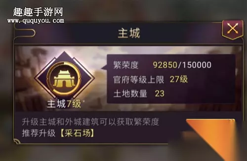 在七雄争霸3D手游中,当自己的主城被攻打之后,繁荣度就会下降,如果繁荣度不足,自己的官府等级也不能提升,那么如何恢复繁荣度呢,一起来看看吧。