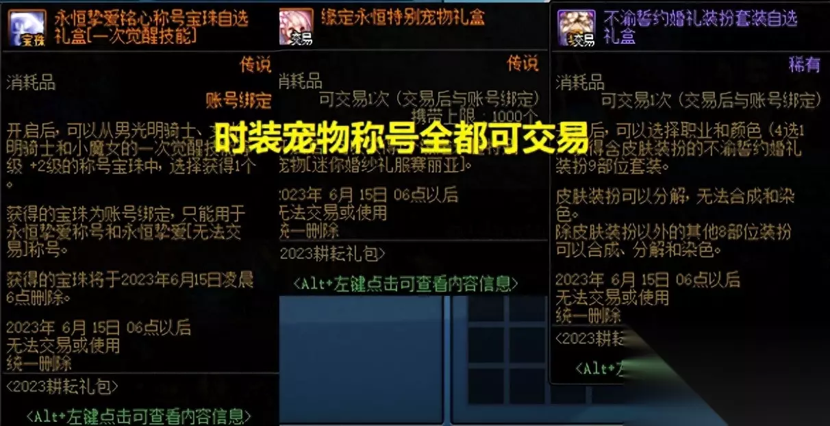 花篮的作用就很大了,8个花篮可换1个自选白金徽章,12个花篮可换1个3级称号,以及最重要的,1个花篮可换1个增幅礼袋,内含10个增幅器。 要知道一个神秘礼盒有2个花篮,也就是说,每个神秘礼盒保底就有20个增幅器,而且还没有兑换次数限制,所以神秘礼盒的价格应该是比较高的。 4、“宠物宝珠”可交易吗? 购买五一套拿到手的宝珠礼盒是账绑的,但是打开之后的宠物宝珠是可交易的;