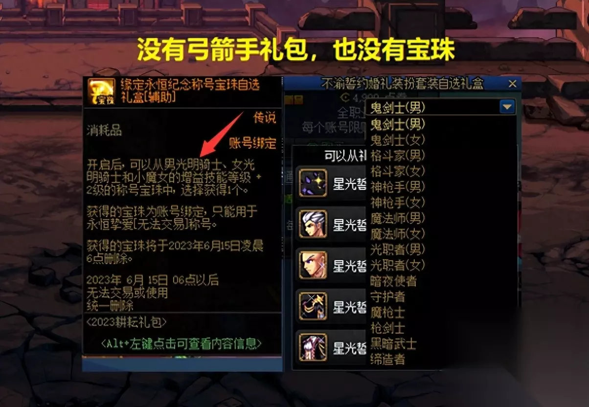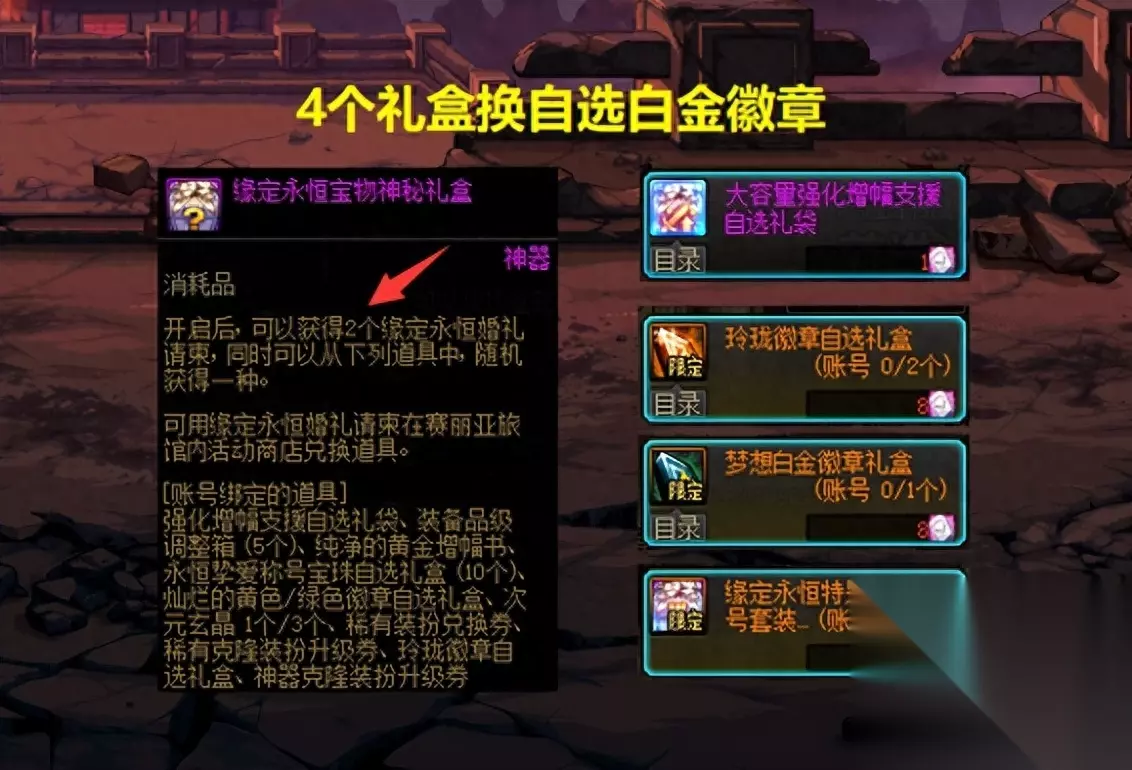 于是这里就出现了一个有意思的地方,既然五一礼包无法给弓箭手使用,称号宝珠也不能选择弓箭手技能,那么这就意味着:弓箭手不需要买五一套! “弓箭手不需要买五一套”,这一点很重要,而且就算买了也用不到。 3、“神秘礼盒”有什么用? 主要作用有2个,一是可随机开出道具,比如增幅礼袋、增幅券、调整箱等等;二是打开每个神秘礼盒,保底可获得2个花篮(请柬)!