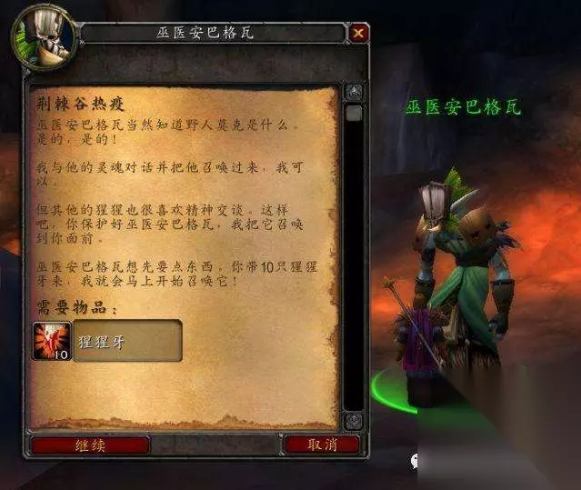 和洞里的巫医安巴格瓦对话,点击继续,自动上交10个猩猩牙,可重复交任务