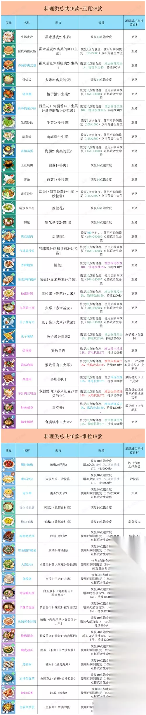 总之以上就是游戏当中的全部食谱了,玩家可以根据食谱材料制作这些食材吧,其中主要是食材的获取比较的麻烦,需要跑地图,制作还是比较简单的。