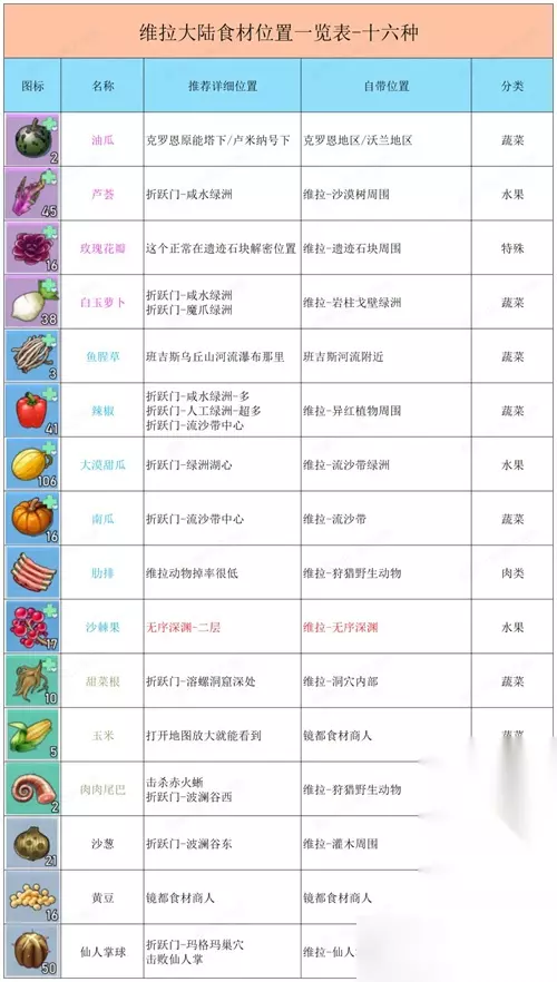 四、维拉食材位置: