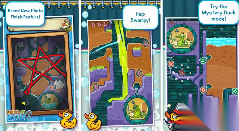 本款游戏拥有以超过100个不同的关卡,难度不一而且趣味不同。有的关卡存在污水,会让小鳄鱼变得越来越脏从而关卡失败,有的关卡则存在各种神秘的机关。通过一定数量的关卡之后,就会获得一些纪念品。