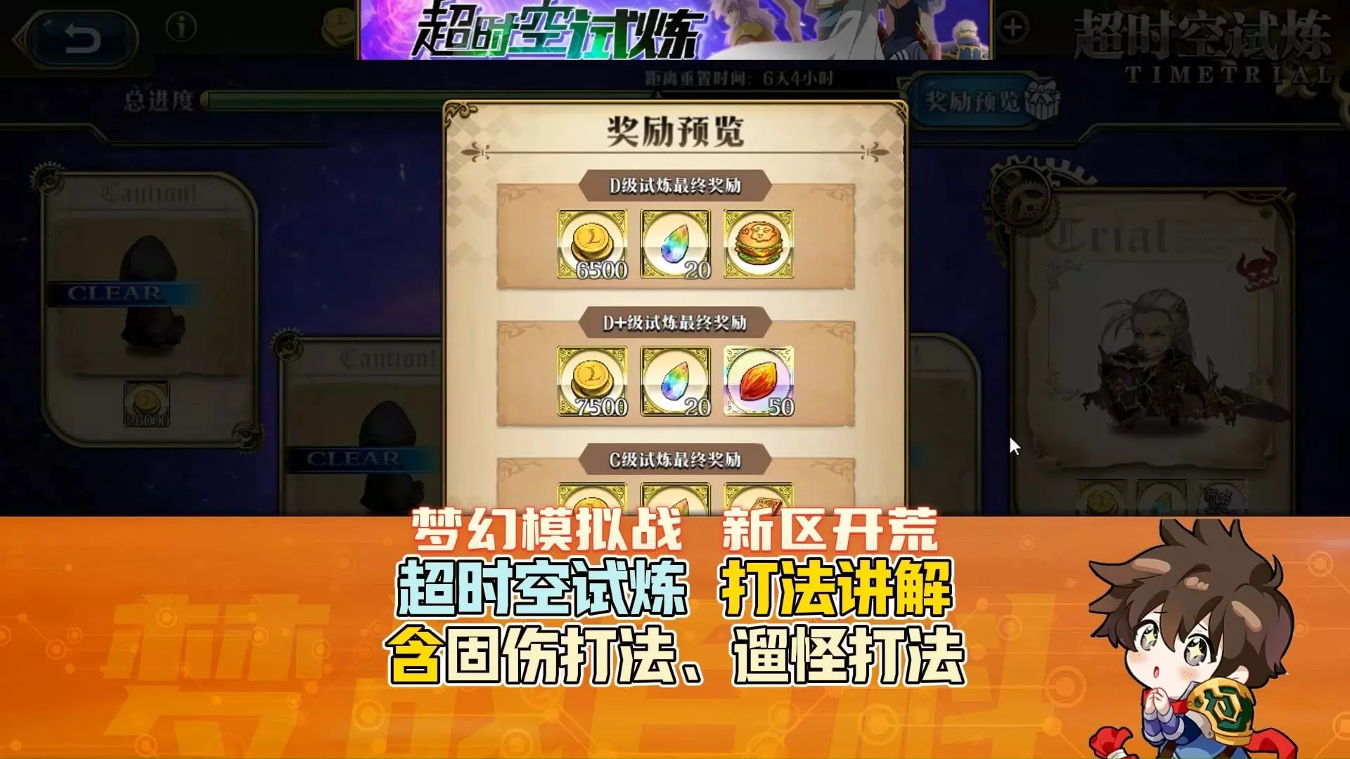 这是《梦幻模拟战》的游戏内容,展示了开服6天的43级新号通关超时空试炼SSSS5的战斗过程,呈现了战斗布局、英雄站位等通关相关画面。